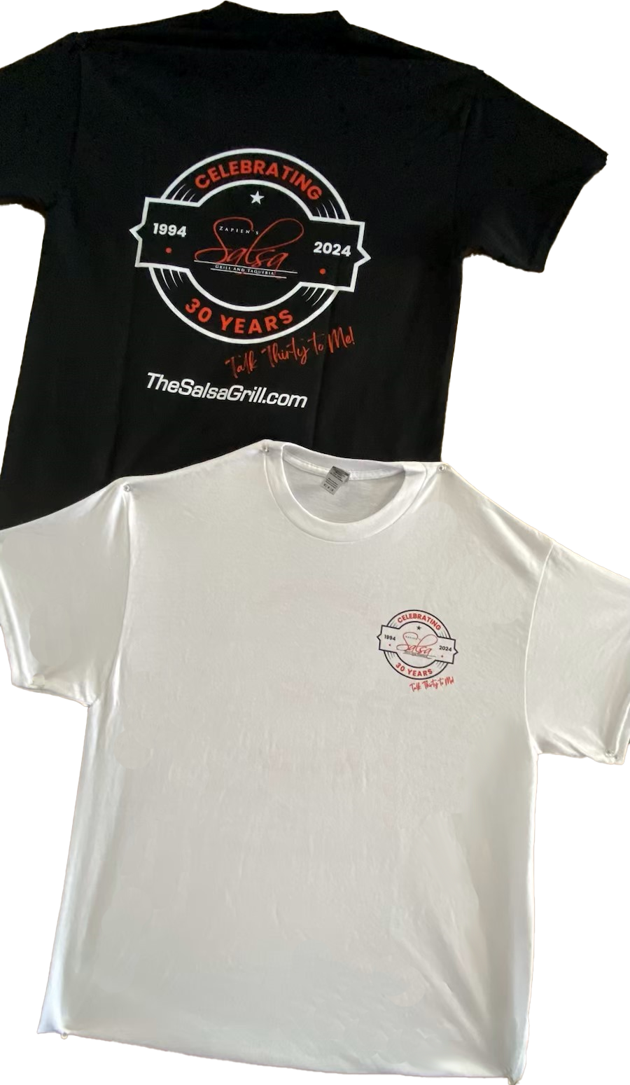 Home / Shop / T-Shirts / Salsa Grill Anniversary T-Shirt Salsa Grill Anniversary T-Shirt$20.00 Size Choose an optionLMXLXXL Color Choose an optionWhiteBlackClear Salsa Grill Anniversary T-Shirt quantity Buy now SKU: ANNITEE Category: T-Shirts Product ID: 4316 Description Additional information Description Salsa Grill Anniversary Logo T-Shirt, Available in Black or White Additional information Weight 1 lbs Size L, M, XL, XXL Color White, Black Related products Out of stock Inspired by Tradition T-Shirt $20.00 Buy now Out of stock Muy Sabrosa T-Shirt $20.00 Buy now Out of stock M & M T-shirt $20.00 Buy now Women’s Cut Salsa Grill Anniversary T-Shirt $20.00 Buy now